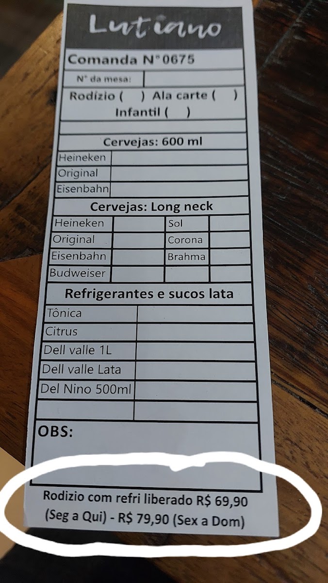 Lutiano - Pizzas e Massas Menu